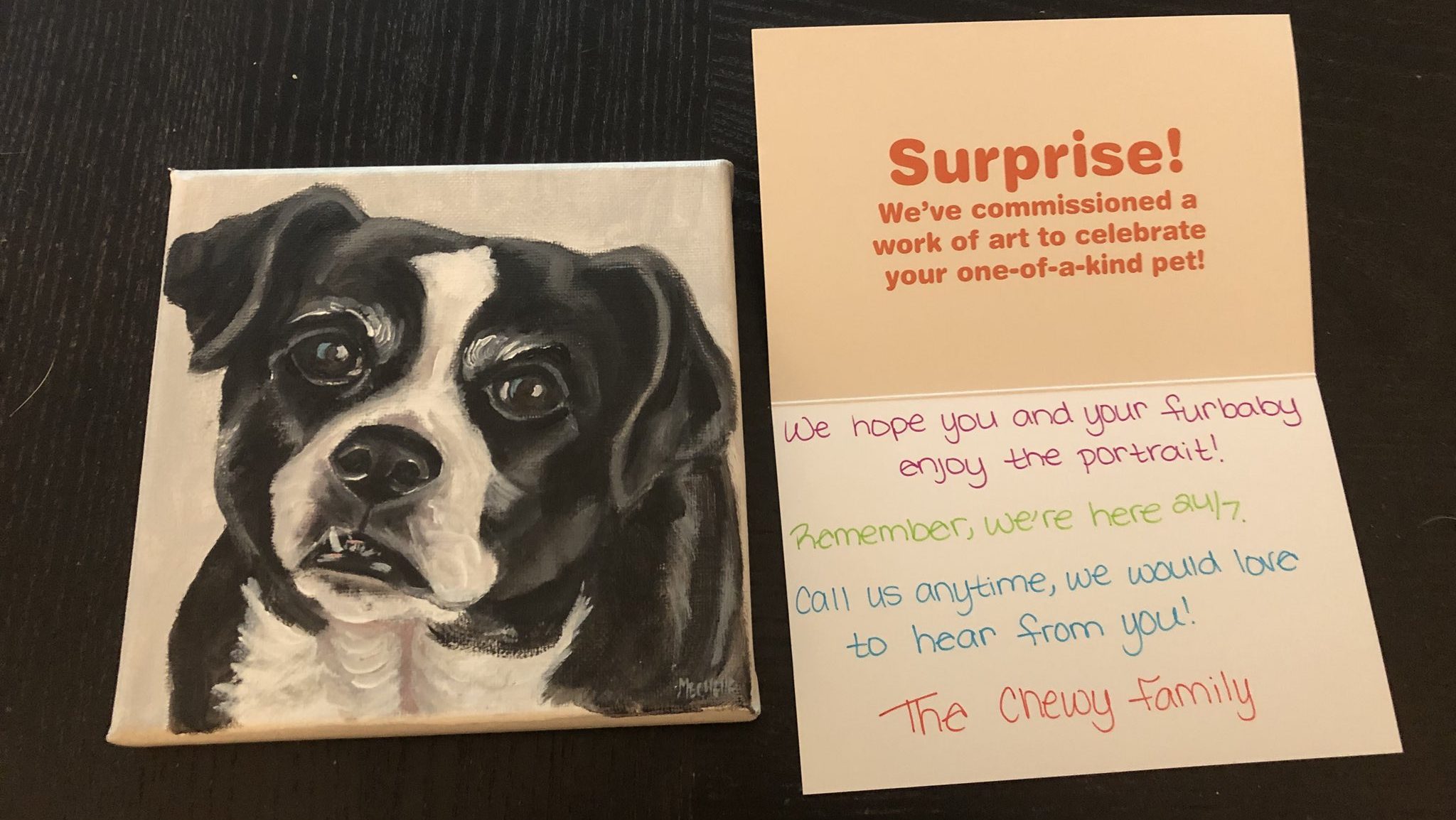 We are also known for sending out handwritten notes with humourous pet puns, birthday cards, and some customers have even received a painting of their pet along with their order.